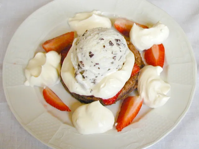Zweierlei Topfenschaum auf Erdbeerspiegel