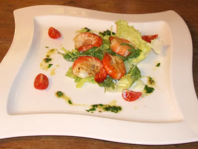 Ziegenfrischkäse mit Zwetschken auf Rucola
