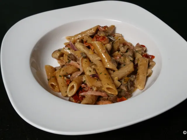 Vollkornnudeln in Tomatensoße & Käse
