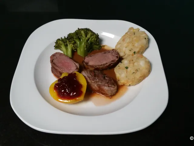 Reh Ragout in Schoko Rotwein Sauce